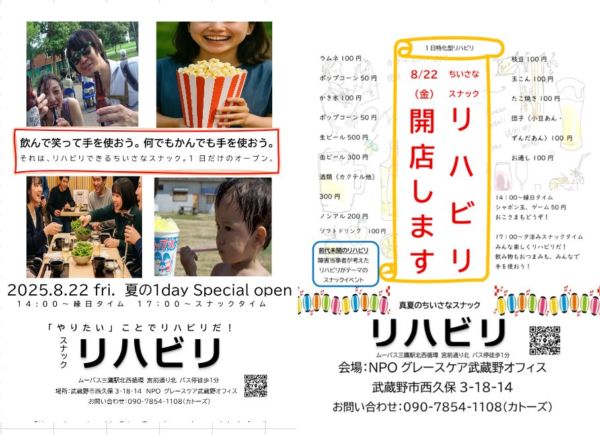 🍹 わあ楽しい!ちょっとウキウキ!あれ?なんかリハビリだった ― グレースケア利用者さん発案 “リハビリバー”オープン!8/22(金) ―