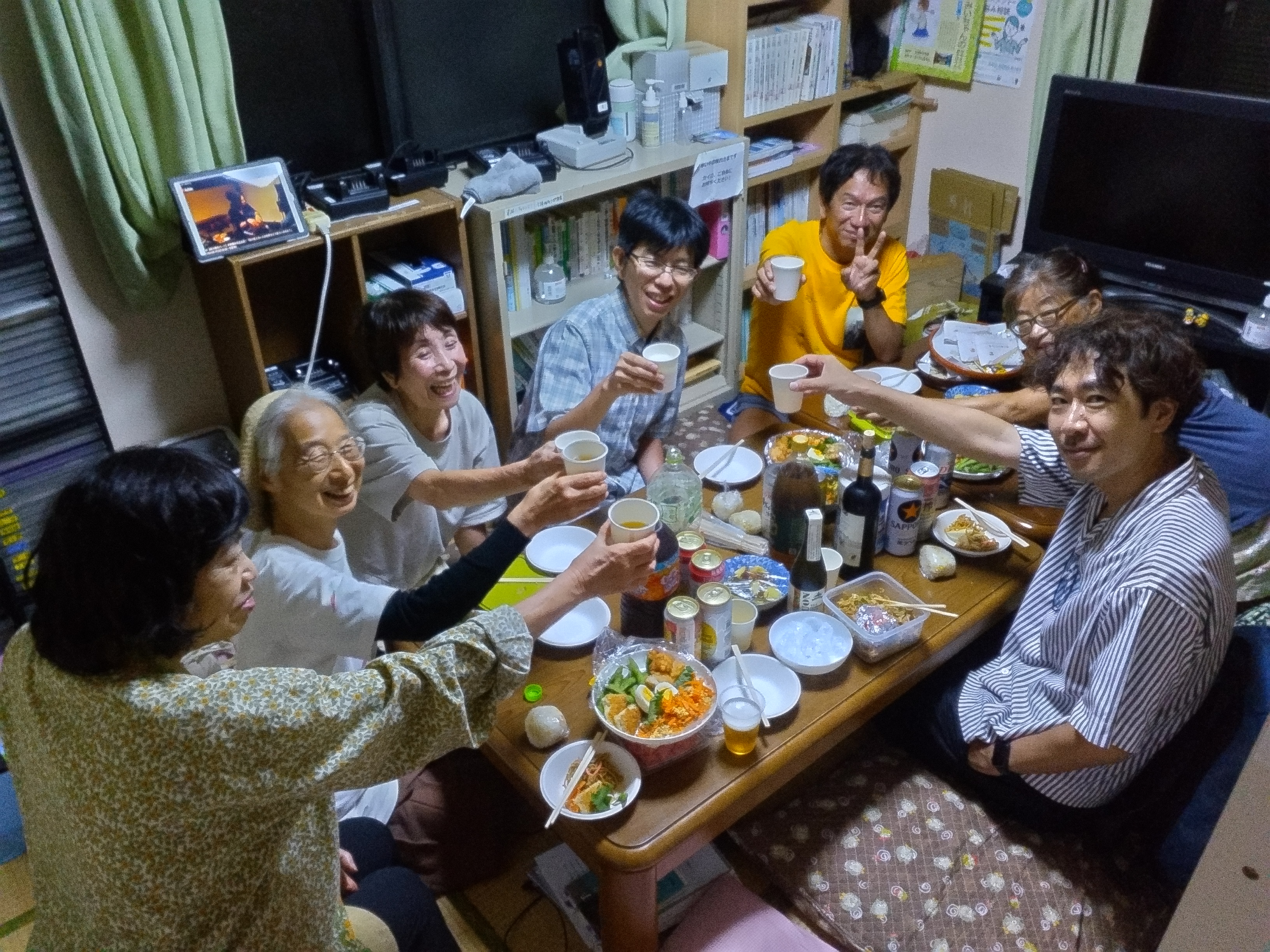 交流会では手作りのご飯やお酒を楽しみながら親睦を深めました。