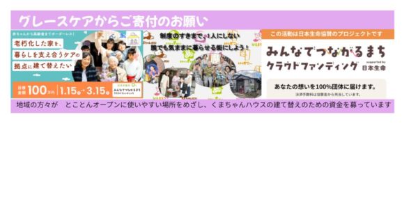 いつもグレースケアを応援いただき、ありがとうございます。 「くまちゃんハウス」建て替えプロジェクトのクラウドファンディングを開始してから、早いもので数週間が経ちました。